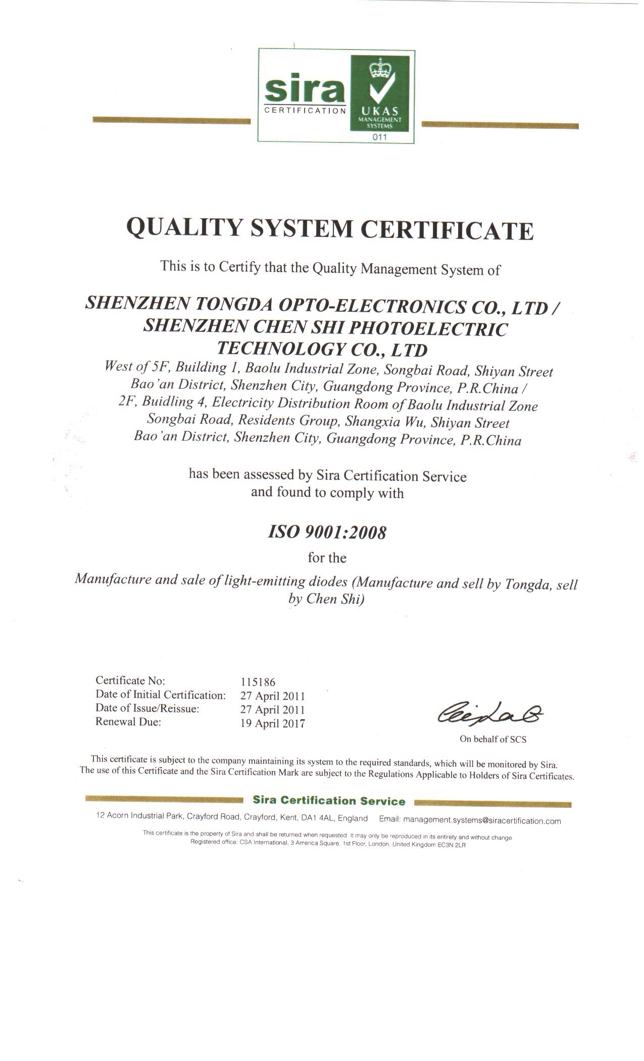 質量保障 >> ISO質量證書